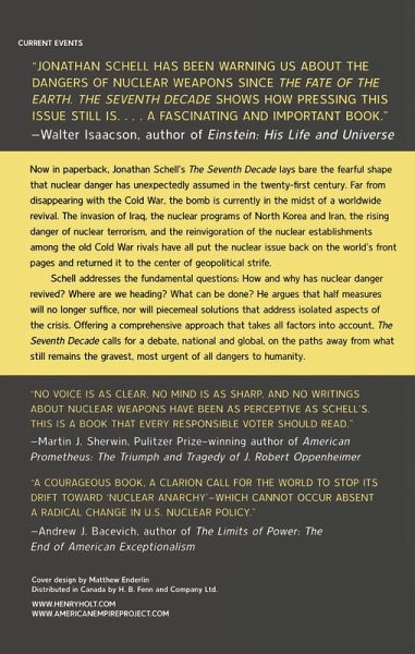 In this provocative book, Jonathan Schell argues that a revolution in nuclear affairs has occurred under the watch of the Bush administration, including a historic embrace of a first-strike policy to combat proliferation. The administration has also encouraged a nuclear renaissance at home, with the development of new generations of such weaponry. Far from curbing nuclear buildup, Schell contends, our radical policy has provoked proliferation in Iran, North Korea, and elsewhere; exacerbated global trafficking in nuclear weapons; and taken the world into an era of unchecked nuclear terror. Incisive and passionately argued, The Seventh Decade offers essential insight into what may prove the most volatile decade of the nuclear age.