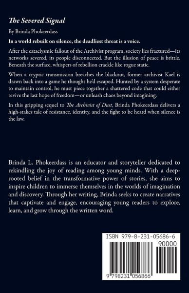 The Severed Signal By Brinda Phokeerdass In a world rebuilt on silence, the deadliest threat is a voice. After the cataclysmic fallout of the Archivist program, society lies fractured-its networks severed, its people disconnected. But the illusion of peace is brittle. Beneath the surface, whispers of rebellion crackle like rogue static. When a cryptic transmission breaches the blackout, former archivist Kael is drawn back into a game he thought he'd escaped. Hunted by a system desperate to maintain control, he must piece together a shattered code that could either revive the last hope of freedom-or unleash chaos beyond imagining. In this gripping sequel to The Archivist of Dust, Brinda Phokeerdass delivers a high-stakes tale of resistance, identity, and the fight to be heard when silence is the law.