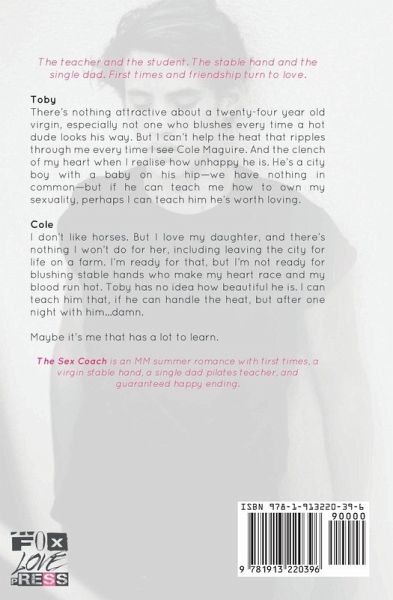 The teacher and the student. The stable hand and the single dad. First times and friendship turn to love. Toby There's nothing attractive about a twenty-four year old virgin, especially not one who blushes every time a hot dude looks his way. But I can't help the heat that ripples through me every time I see Cole Maguire. And the clench of my heart when I realise how unhappy he is. He's a city boy with a baby on his hip-we have nothing in common-but if he can teach me how to own my sexuality, perhaps I can teach him he's worth loving. Cole I don't like horses. But I love my daughter, and there's nothing I won't do for her, including leaving the city for life on a farm. I'm ready for that, but I'm not ready for blushing stable hands who make my heart race and my blood run hot. Toby has no idea how beautiful he is. I can teach him that, if he can handle the heat, but after one night with him...damn. Maybe it's me that has a lot to learn. The Sex Coach is an MM summer romance with first times, a virgin stable hand, a single dad pilates teacher, and guaranteed happy ending.