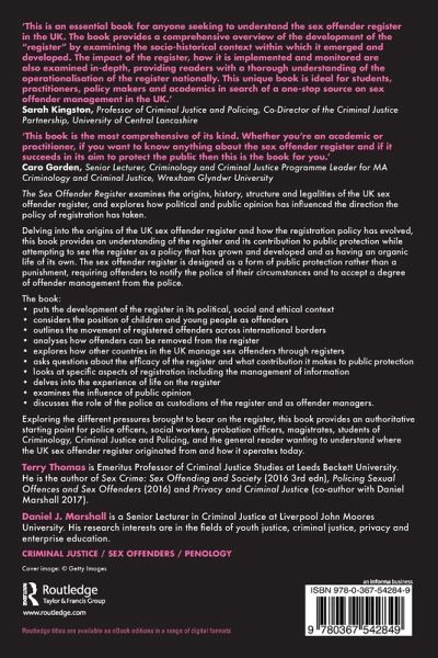 1. Introduction 2. The Origins of the UK register 3. The Sex Offenders Act 1997 4. The First Five Years (1997-2002) 5. The Sexual Offences Act 2003 6. 2003-2010 7. The Years 2010-2020 8. Life on the Register 9. The Management of Information held on the Register 10. The Registration of Children and Young People who Commit Sexual Offences 11. The 'Travelling Sex Offender' 12. Coming off the Register 13. The register in Scotland, Northern Ireland, the Channel Islands, the Isle of Man and other British Overseas Territories 14. Conclusions References and Bibliography Index