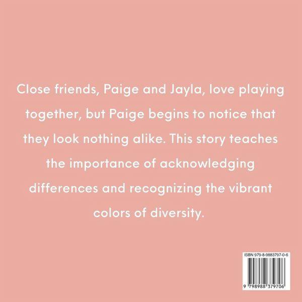 Close friends, Paige and Jayla, love playing together, but Paige begins to notice that they look nothing alike. This story teaches the importance of acknowledging differences and recognizing the vibrant colors of diversity.