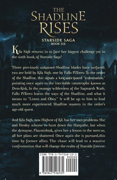Three previously unknown Shadline blades have surfaced, two are held by Kila Sigh, one by Fallo PiTorro. To the order of the Shadline, this signals a long-anticipated "culmination," pointing once again to the inevitable catastrophe known as Dem-Kisk. In the swampy wilderness of the Sagmarsh Wash, Fallo PiTorro learns the ways of the Shadline, and what it means to "Listen and Obey." It will be up to him to lead much more experienced Shadline masters in the order's age-old quest. And Kila Sigh, now Highest of Kil, has her own problems. She and Henley scheme to hunt down the Hargothe, but when the demayne, Flaumishtak, gives her a lesson in the mercus, all her plans are shattered. Once again she is pursued.,this time by former allies. The chase will lead to a massive confrontation that will change the realm of Starside forever. Edstrom builds the action and wonder to epic levels in The Shadline Risesand once again gives Starside Saga fans all the magic battles, heartfelt humor, and shocking twists they've come to expect.
