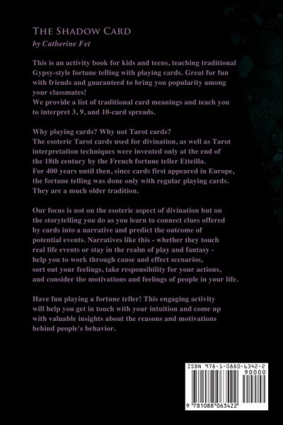 This is an activity book for kids and teens, teaching traditional Gypsy-style fortune telling with playing cards. Great for fun with friends and guaranteed to bring you popularity among your classmates! We provide a list of traditional card meanings and teach you to interpret 3, 9, and 10-card spreads. Why playing cards? Why not Tarot cards? The esoteric Tarot cards used for divination, as well as Tarot interpretation techniques were invented only at the end of the 18th century by the French fortune teller Etteilla. For 400 years until then, since cards first appeared in Europe, the fortune telling was done only with regular playing cards. They are a much older tradition. Our focus is not on the esoteric aspect of divination but on the storytelling you do as you learn to connect clues offered by cards into a narrative and predict the outcome of potential events. Narratives like this - whether they touch real life events or stay in the realm of play and fantasy - help you to work through cause and effect scenarios, sort out your feelings, take responsibility for your actions, and consider the motivations and feelings of people in your life. Have fun playing a fortune teller! This engaging activity will help you get in touch with your intuition and come up with valuable insights about the reasons and motivations behind people's behavior.
