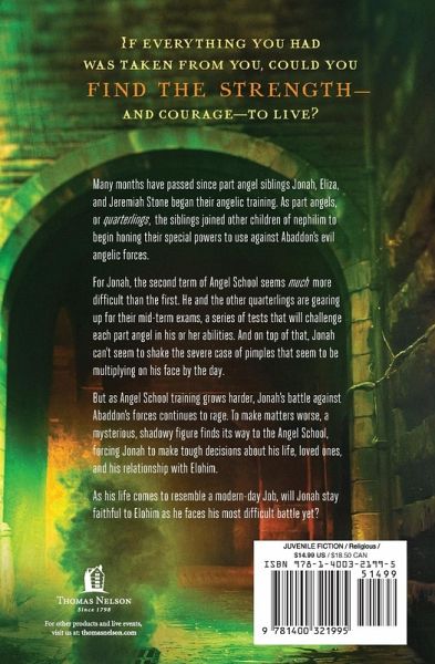 Join part angel Jonah Stone as he faces his biggest challenge yet! Many months have passed since part angel siblings Jonah, Eliza, and Jeremiah Stone began their angelic training. As part angels, or quarterlings, the siblings joined other children of nephilim to begin honing their special powers. In this third installment in the Son of Angels series, Jonah's story comes to resemble a modern-day Job as he's faced with trials that affect his health, strength, relationships, and most-prized possessions. As he and the other quarterlings prepare for mid-term exams, their powers are tested once again in the most fierce battle against Abaddon's forces yet. Will Jonah's faith in Elohim continue to persevere as he fights Abaddon in his hardest battle yet? Parents today are looking for fiction that makes Christianity and the Bible exciting for their kids. This series is the first Christian answer to Percy Jackson and the Olympians, the Kane Chronicles, the Secret Series, and other middle-grade series packed with action, adventure, and supernatural fights. But the message is solidly based in Scripture, conveying God is always in control. Meets national education standards.