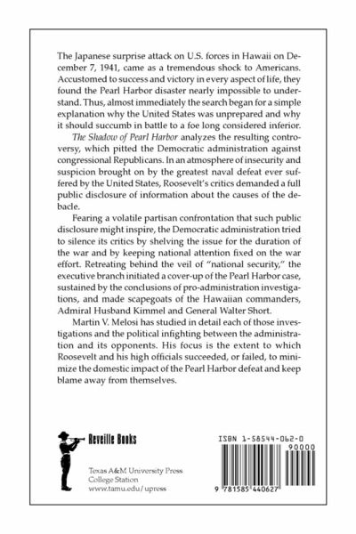 The Japanese surprise attack on U.S. forces in Hawaii on December 7, 1941, came as a tremendous shock to Americans. Accustomed to success and victory in every aspect of life, they found the Pearl Harbor disaster nearly impossible to understand. Thus, almost immediately the search began for a simple explanation why the United States was unprepared and why it should succumb in battle to a foe long considered inferior. The Shadow of Pearl Harbor analyzes the resulting controversy, which pitted the Democratic administration against congressional Republicans. In an atmosphere of insecurity and suspicion brought on by the greatest naval defeat ever suffered by the United States, Roosevelt's critics demanded a full public disclosure of information about the causes of the debacle. Fearing a volatile partisan confrontation that such public disclosure might inspire, the Democratic administration tried to silence its critics by shelving the issue for the duration of the war and by keeping national attention fixed on the war effort. Retreating behind the veil of "national security," the executive branch initiated a cover-up of the Pearl Harbor case, sustained by the conclusions of pro-administration investigations, and made scapegoats of the Hawaiian commanders, Admiral Husband Kimmel and General Walter Short. Martin V. Melosi has studied in detail each of those investigations and the political infighting between the administration and its opponents. His focus is the extent to which Roosevelt and his high officials succeeded, or failed, to minimize the domestic impact of the Pearl Harbor defeat and keep blame away from themselves.