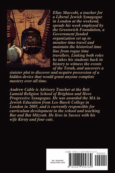 The Shadow on the Dial tells the story of Elias Maccobi, a Religion School Teacher employed by the Greenwich Foundation to protect and maintain the historical time line from rogue time travellers. Linking both roles Elias travels with his students back in time to witness the events of their Torah studies and so discovers a plot by enemy agents to gain mastery over all history and the future.