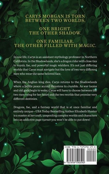 Carys Morgan is torn between two worlds. One bright. The other shadow. One familiar. The other filled with magic. In one life, Carys is an assistant mythology professor in Northern California. In the Shadowlands, she's a dragon rider with close ties to royals, fae, and powerful magic wielders. It's not just differing worlds that Carys must navigate, but the love of two very different men who wear the same beloved face. When the Anglian king dies, Carys returns to the Shadowlands where a brittle peace accord is threatening to crumble. As war looms and old gods begin to wake, Carys will have to choose between the two men vying for her heart, and the two worlds that promise very different destinies. Dragons, fae, and a fantasy world that is at once familiar and entirely unique- USA Today Bestselling Author Elizabeth Hunter is a master at her craft, unspooling complex worlds and characters into an addictive page-turner that you won't be able to put down!
