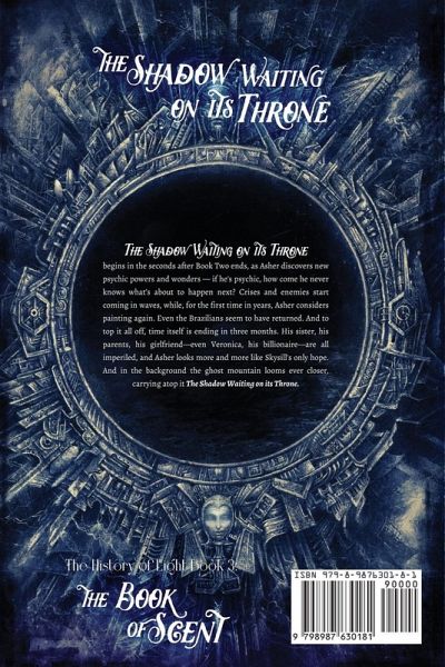 The Shadow Waiting on its Throne begins in the seconds after Book Two ends, as Asher discovers new psychic powers and wonders - if he's psychic, how come he never knows what's about to happen next? Crises and enemies start coming in waves, while, for the first time in years, Asher considers painting again. Even the Brazilians seem to have returned. And to top it all off, time itself is ending in three months. His sister, his parents, his girlfriend-even Veronica, his billionaire-are all imperiled, and Asher looks more and more like Skysill's only hope. And in the background the ghost mountain looms ever closer, carrying atop it The Shadow Waiting on its Throne.