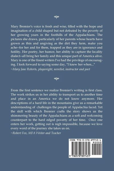 Born in 1928, Mary Bremier has a remarkably keen eye, both for the beauty of her natural world and for the telling details of human frailty. The Shadows of Appalachia has a deft, musical voice that recalls the regional dialect as well as the songs, sayings, and prayers that shaped her Depression-era childhood. Her gentle irony lays bare the mindset of her hardworking, proud, ignorant, doomed-to-failure, beloved Appalachian family. The Appalachian culture, the same subject as Hillbilly Elegy, is expanded upon in The Shadows of Appalachia with empathy, a rich cast of characters, and some…mehr