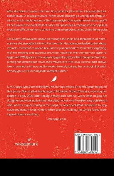 After decades of service, the time has come for Jill to retire. Choosing to tuck herself away in a sleepy suburb -- what could possibly go wrong? Jill's lethal instincts, which made her one of the most sought-after government assets, won't let her slip into the quiet life that easily. Her past keeps creeping into her present, making it difficult for her to settle into a life of garden lunches and knitting clubs. The Shady Oaks Division follows Jill through the trials and tribulations of retirement as she struggles to fit into her new role. Her paranoia, fueled by her sharp instincts, threatens to upend her. But is it just paranoia? Or are they forgetting that her training and expertise are what made her their number-one asset to begin with? Will Jackson, the agent assigned to Jill, be able to keep her from disturbing the picturesque town she's moved into? His own colorful past allows him to connect with her, and he works tirelessly to keep her on track. But will it be enough, or will it complicate matters further?