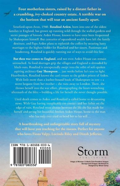 Four motherless sisters, raised by a distant father in a crumbling, ivy-choked country estate. A terrible war on the horizon that will tear an ancient family apart... Stratford-upon-Avon, 1940. Rosalind Arden, born into one of the oldest families in England, has grown up running wild through the walled gardens and secret passages of historic Arden House, known to have once been frequented by Shakespeare himself. But centuries of squandered wealth have left the family destitute, and Papa Arden plans to replenish the coffers by securing hasty marriages to the highest bidder for Rosalind and her sisters. Passionate and headstrong, Rosalind is quickly running out of ways to avoid this fate. But then war comes to England, and not even Arden House can remain untouched. As food shortages grip the villages and England is shrouded by black-outs, Rosalind is unexpectedly swept into the orbit of soft-spoken aspiring architect Guy Thompson... just weeks before he's sent to fight. Heartbroken, Rosalind knows she can't return to the golden prison of Arden. Packing her one treasure, a leather-bound book of Shakespeare - a secret bequest from her mother - she runs away to London. There, she throws herself into the war effort, photographing the heart-wrenching aftermath of the blitz - building a life for herself she never thought possible... Until she is called home to devastating news. With Guy having inexplicably cut contact and her father on the edge of ruin, Rosalind must choose between the life she has made for herself and saving her beautiful, broken Arden House, home to the man who has only ever tried to bend her to his will... A heartbreaking and unforgettable story full of mystery that will have you reaching for the tissues. Perfect for anyone who loves Fiona Valpy, Lucinda Riley and Dinah Jefferies.