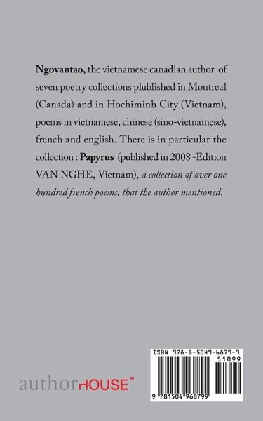 Ngovantao, the vietnamese canadian author of seven poetry collections plublished in Montreal (Canada) and in Hochiminh City (Vietnam), poems in vietnamese, chinese (sino-vietnamese), french and english. There is in particular the collection : Papyrus (published in 2008 -Edition VAN NGHE, Vietnam), a collection of over one hundred french poems, that the author mentioned.