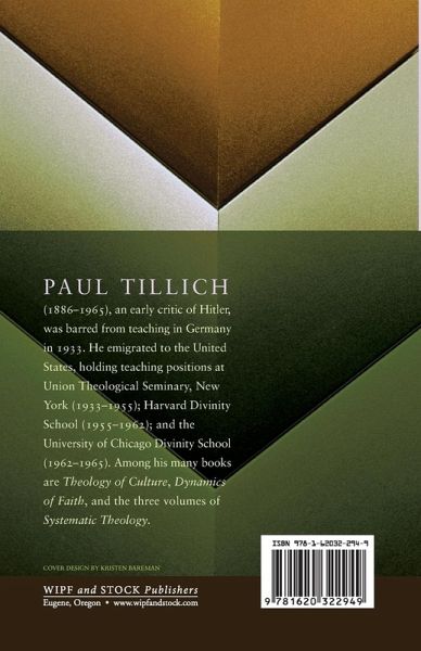 Author Biography: Paul Tillich (1886-1965), an early critic of Hitler, was barred from teaching in Germany in 1933. He emigrated to the United States, holding teaching positions at Union Theological Seminary, New York (1933-1955); Harvard Divinity School (1955-1962); and the University of Chicago Divinity School (1962-1965). Among his many books are Theology of Culture, Dynamics of Faith, and the three volumes of Systematic Theology.