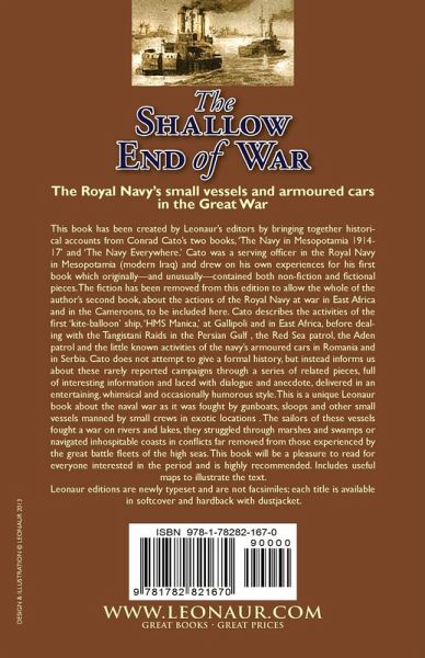 The Royal Navy's small vessels and armoured cars in the Great War This book has been created by Leonaur's editors by bringing together historical accounts from Conrad Cato's two books, 'The Navy in Mesopotamia 1914-17' and 'The Navy Everywhere.' Cato was a serving officer in the Royal Navy in Mesopotamia (modern Iraq) and drew on his own experiences for his first book which originally-and unusually-contained both non-fiction and fictional pieces. The fiction has been removed from this edition to allow the whole of the author's second book, about the actions of the Royal Navy at war in East Africa and in the Cameroons, to be included here. Cato describes the activities of the first 'kite-balloon' ship, 'HMS Manica,' at Gallipoli and in East Africa, before dealing with the Tangistani Raids in the Persian Gulf , the Red Sea patrol, the Aden patrol and the little known activities of the navy's armoured cars in Romania and in Serbia. Cato does not attempt to give a formal history, but instead informs us about these rarely reported campaigns through a series of related pieces, full of interesting information and laced with dialogue and anecdote, delivered in an entertaining, whimsical and occasionally humorous style. This is a unique Leonaur book about the naval war as it was fought by gunboats, sloops and other small vessels manned by small crews in exotic locations . The sailors of these vessels fought a war on rivers and lakes, they struggled through marshes and swamps or navigated inhospitable coasts in conflicts far removed from those experienced by the great battle fleets of the high seas. This book will be a pleasure to read for everyone interested in the period and is highly recommended. Includes useful maps to illustrate the text. Leonaur editions are newly typeset and are not facsimiles; each title is available in softcover and hardback with dustjacket.