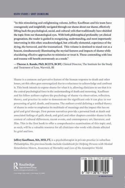 Part I: Introductory Essay.Kauffman On the Primacy of Shame. PartII: A Personal Narrative. Costa Side by Side. PartIII: Psychological Reflections on Shame and Grief. Shermer Between Shame Death and Mourning: The Predispositional Role of Early Attachments and the Sense of Self. C. Figley Albright K. Figley Combat Combat Stress Injuries and Shame. Harris Healing the Narcissistic Injury of Death in the Context of Western Society. Tyree Shame: A Hospice Worker's Reflections. PartIV: Cultural Differences. Rosenblatt Shame and Death in Cultural Context. PartV: Languages of Art. Clark Mask of Shame Mask of Death: Some Reflections on the Shame of Death. Underwood Winters Using the Representation of Grief and Shame in Contemporary Literature and Film to Train Mental Health Professionals. PartVI: Social Conscience and the Psychology of Shame. Roos The Long Road to Relevance: Disability Chronic Sorrow and Shame.