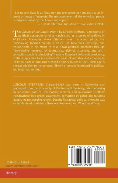 "But no one class is at fault, nor any one breed, nor any particular interest or group of interests. The misgovernment of the American people is misgovernment by the American people." -Lincoln Steffens, The Shame of the Cities (1904) The Shame of the Cities (1904), by Lincoln Steffens, is an exposé of political corruption originally published as a series of articles in McClure's Magazine where Steffens was managing editor. His muckraking focused on major cities like New York, Chicago, and Philadelphia in his effort to take down political machines through interviewing hundreds of journalists, district attorneys, and anti-corruption specialists including Theodore Roosevelt before his presidency. Steffens appealed to his audience's sense of morality and emotion to incite political reform. This detailed primary source of the Gilded Age is a great addition to the personal library of anyone interested in political and historical writing.