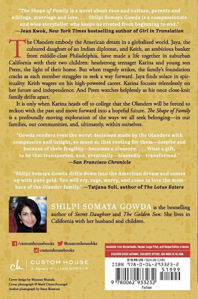 NATIONAL & INTERNATIONAL BESTSELLER Named a book not to miss by USA Today * Chicago Sun-Times * New York Post "Deeply involving....Rings so true." -- Emma Donoghue, bestselling author of Room From the international bestselling author of Secret Daughter and The Golden Son comes a poignant, unforgettable novel about a family's growing apart and coming back together in the wake of tragedy. ?The Shape of Family is a novel about race and culture, parents and siblings, marriage and love, but most of all, it's about finding hope after darkness. Shilpi Somaya Gowda is a compassionate and wise storyteller who keeps us riveted from beginning to end.? -- Jean Kwok, New York Times bestselling author of Girl in Translation The Olander family embodies the modern American Dream in a globalized world. Jaya, the cultured daughter of an Indian diplomat and Keith, an ambitious banker from middle-class Philadelphia, meet in a London pub in 1988 and make a life together in suburban California. Their strong marriage is built on shared beliefs and love for their two children: headstrong teenager Karina and young son Prem, the light of their home. But love and prosperity cannot protect them from sudden, unspeakable tragedy, and the family's foundation cracks as each member struggles to seek a way forward. Jaya finds solace in spirituality. Keith wagers on his high-powered career. Karina focuses relentlessly on her future and independence. And Prem watches helplessly as his once close-knit family drifts apart. When Karina heads off to college for a fresh start, her search for identity and belonging leads her down a dark path, forcing her and her family to reckon with the past, the secrets they've held and the weight of their choices. The Shape of Family is an intimate portrayal of four individuals as they grapple with what it means to be a family and how to move from a painful past into a hopeful future. It is a profoundly moving exploration of the ways we all seek belonging?in our families, our communities and ultimately, within ourselves.
