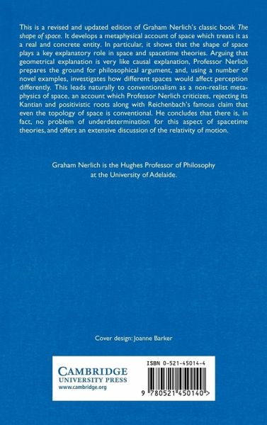 This is a revised and updated edition of Graham Nerlich's classic book The Shape of Space. It develops a metaphysical account of space which treats it as a real and concrete entity. In particular, it shows that the shape of space plays a key explanatory role in space and spacetime theories. Arguing that geometrical explanation is very like causal explanation, Professor Nerlich prepares the ground for philosophical argument, and, using a number of novel examples, investigates how different spaces would affect perception differently. This leads naturally to conventionalism as a non-realist metaphysics of space, an account which Professor Nerlich criticises, rejecting its Kantian and positivistic roots along with Reichenbach's famous claim that even the topology of space is conventional. He concludes that there is, in fact, no problem of underdetermination for this aspect of spacetime theories, and offers an extensive discussion of the relativity of motion.