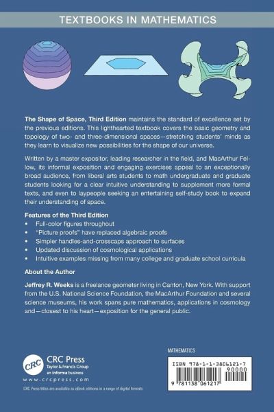 The Shape of Space, Third Edition maintains the standard of excellence set by the previous editions. This lighthearted textbook covers the basic geometry and topology of two- and three-dimensional spacesâ stretching studentsâ minds as they learn to visualize new possibilities for the shape of our universe.