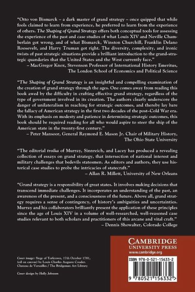 Within a variety of historical contexts, The Shaping of Grand Strategy addresses the most important tasks states have confronted: namely, how to protect their citizens against the short-range as well as long-range dangers their polities confront in the present and may confront in the future. To be successful, grand strategy demands that governments and leaders chart a course that involves more than simply reacting to immediate events. Above all, it demands they adapt to sudden and major changes in the international environment, which more often than not involves the outbreak of great conflicts but at times demands recognition of major economic, political, or diplomatic changes. This collection of essays explores the successes as well as failures of great states attempting to create grand strategies that work and aims at achieving an understanding of some of the extraordinary difficulties involved in casting, evolving and adapting grand strategy to the realities of the world. Grand strategy demands that governments and leaders chart a course that involves more than simply reacting to immediate events. It demands that they adapt to and plan for sudden and major changes in the international environment. This volume explores the successes and failures of these strategies.