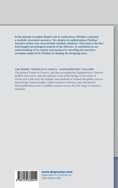 The narrative artistry of Polybius has received relatively little scholarly attention. Critics have tended to discuss his reflections on the various issues presented in his work or to use him as a source of valuable information about the historical period that he records. This volume, which draws on narratology's analytical tools, focuses instead on the narrative of the Histories, exploring the sophisticated narrative techniques that have gone into shaping it. In doing so, it pays particular attention to the ways the formal aspects of the text contribute to promoting Polybius' thematic concerns. Its aim is not only to present the Histories as the work of an author who has taken pains to provide us with a carefully structured story, but also to illustrate how interpretations of this story can be enriched by a sensitivity to factors such as chronological displacements and variations of focalization.