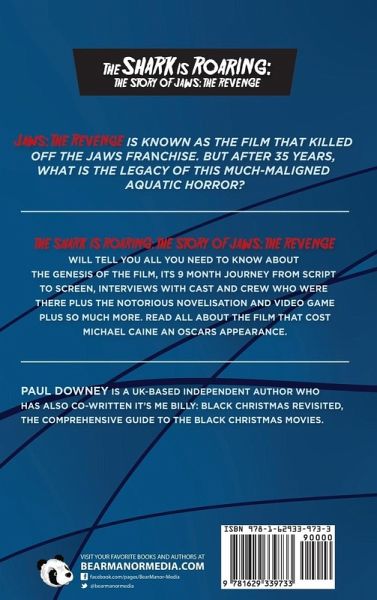 THE SHARK IS ROARING:THE STORY OF JAWS: THE REVENGE Jaws the Revenge is known as the film that killed off the Jaws franchise. But after 35 years, what is the legacy of this much-maligned aquatic horror? The Shark Is Roaring: The Story of Jaws: The Revenge will tell you all you need to know about the genesis of the film, its 9-month journey from script to screen, interviews with cast and crew who were there plus the notorious novelisation and video game, plus so much more. Read all about the film that cost Michael Caine an Oscars appearance. Paul Downey is a UK-based independent author who has co-written It's Me Billy: Black Christmas Revisited, the comprehensive guide to the Black Christmas movies.