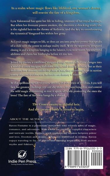 In the mystical realm of Aethoria, magic isn't just power - it's survival. Lyra Valenwood has spent her life hiding a deadly secret: she's the last surviving heir to a throne long thought lost. Raised among rebels, she's honed her skills as a warrior and mage, unaware of the destiny that runs through her veins. But as the tyrannical rule of the Vanguard-a group of powerful mages who overthrew the royal family-tightens its grip on the kingdom, Lyra's dormant powers begin to awaken. When a daring raid goes awry, Lyra finds herself face-to-face with Darius, a conflicted Vanguard mage whose encounter with her will change both their lives forever. As Lyra's magical abilities surge to the surface, she discovers a shocking truth: she is the rightful heir to the Crown of Whispers, an ancient artifact of immense power that may hold the key to freeing Aethoria from the Vanguard's iron fist. Thrust into a world of court intrigue, forbidden magic, and deadly politics, Lyra must navigate treacherous alliances and confront her own inner demons. With the help of Darius, who defects to her side, and a band of loyal rebels, she embarks on a perilous journey to reclaim her birthright and free her people. But the road to the throne is fraught with peril. Archmage Calidus, the ruthless leader of the Vanguard, will stop at nothing to maintain his grip on power. As Lyra's strength grows, so does the threat against her. She must master her newfound abilities and unlock the secrets of the Crown of Whispers before Calidus can harness its power for his own dark purposes. As war engulfs the kingdom, Lyra and Darius find themselves drawn together, their forbidden love blossoming amidst the chaos. But their union has grave consequences. An ancient prophecy foretells of a child born of royal and mage bloodlines - a child with the power to either save Aethoria or utterly destroy it. In a climactic battle that will decide the fate of the kingdom, Lyra must face Calidus and the full might of the Vanguard. With the Crown of Whispers blazing on her forehead, she unleashes magic, unlike anything Aethoria has ever seen. But victory comes at a terrible cost, and the aftermath of the battle leaves the kingdom forever changed. As Lyra takes her place as queen, she faces new challenges. The wild magic unleashed during the conflict has reshaped the very fabric of Aethoria. Ancient forests grow overnight, new magical creatures roam the land, and the balance of power shifts in unpredictable ways. Lyra must find a way to lead her people through this time of change while preparing for threats from within and without. "The Shattered Crown is an epic tale of magic, destiny, and the price of power. It explores themes of identity, responsibility, and the delicate balance between order and chaos. As Lyra struggles to unite a fractured kingdom and master her own growing powers, she must also confront the age-old question: does power corrupt, or does it reveal one's true nature? Prepare to be captivated as you enter the world of Aethoria, where every choice has consequences and the line between hero and villain blurs with every turn of the page. Will Lyra rise to the challenge and become the queen her people need? Or will the weight of the crown-and the magic within it-shatter everything she holds dear? Are you ready for the fight?