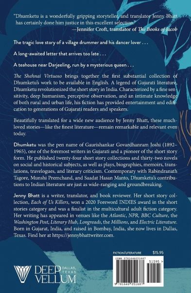 Dhumketu was the pen name of Gaurishankar Govardhanram Joshi (1892-1965), one of the foremost writers in Gujarati and a pioneer of the short story form. He published twenty-four short story collections and thirty-two novels on social and historical subjects, as well as plays, biographies, memoirs, translations, travelogues, and literary criticism. Contemporary with Rabindranath Tagore, Munshi Premchand, and Saadat Hasan Manto, Dhumketu's contributions to Indian literature are just as wide-ranging and groundbreaking. Jenny Bhatt is a writer, translator, and book reviewer. Her short story collection, Each of Us Killers, won a 2020 Foreword INDIES award in the short stories category and was a finalist in the multicultural adult fiction category. Her writing has appeared in venues like the Atlantic, NPR, BBC Culture, the Washington Post, Literary Hub, Longreads, the Millions, and Electric Literature. Born in Gujarat, India, and raised in Bombay, India, she now lives in Dallas, Texas. Find her at https: //jennybhattwriter.com.