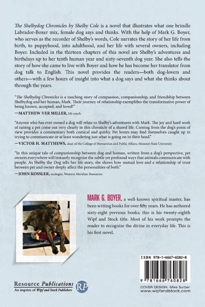 The Shelbydog Chronicles by Shelby Cole is a novel that illustrates what one brindle Labrador-Boxer mix, female dog says and thinks. With the help of Mark G. Boyer, who serves as the recorder of Shelby's words, Cole narrates the story of her life from birth, to puppyhood, into adulthood, and her life with several owners, including Boyer. Included in the thirteen chapters of this novel are Shelby's adventures and birthdays up to her tenth human year and sixty-seventh dog year. She also tells the story of how she came to live with Boyer and how he has become her translator from dog talk to English. This novel provides the readers--both dog-lovers and others--with a few hours of insight into what a dog says and what she thinks about through the years.