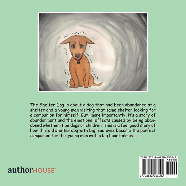 The Shelter Dog is about a dog that had been abandoned at a shelter and a young man visiting that same shelter looking for a companion for himself. But, more importantly, it's a story of abandonment and the emotional effects caused by being abandoned whether it be dogs or children. This is a feel good story of how this old shelter dog with big, sad eyes became the perfect companion for this young man with a big heart-almost.......