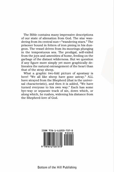 The Bible contains many impressive descriptions of our state of alienation from God. The star wandering from its central sun-"wandering stars." The prisoner bound in fetters of iron pining in his dungeon. The vessel driven from its moorings plunging in the tempestuous sea. The prodigal, self-exiled from the joys and amenities of home, feeding on the garbage of the distant wilderness. But we question if any figure more simply yet more graphically delineates the natural estrangement of the heart than that of the stray sheep. What a graphic two-fold picture of apostasy is here! "We all like sheep have gone astray." ALL have strayed from the Shepherd (that is the universal characteristic), and then it is added, "We have turned everyone to his own way." Each has some bye-way or separate track of sin, down which, or along which, he rushes, widening his distance from the Shepherd-love of God.
