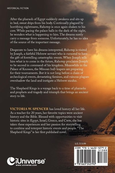 After the pharaoh of Egypt suddenly awakens and sits up in bed, sweat drips from his body. Continually plagued by horrifying nightmares, Rahotep is once again shaken to his core. While pacing the palace halls in the dark of the night, he wonders what is happening to him. The dreams surely carry a message from someone. Unfortunately, he has no idea of the source of the important message. Desperate to have his dreams interpreted, Rahotep is visited by Joseph, a faithful Hebrew servant who is rumored to have the gift of foretelling catastrophic events. When Joseph tells him what is to come in the future, Rahotep proclaims Joseph to be second in command of his kingdom. Meanwhile in the Palace of Knossos, the Minoan bull-leapers are preparing for their tournaments. But it is not long before a chain of archeological events, devastating famines, and ruinous plagues overshadow the land and instigate a Hebrew exodus. The Shepherd Kings is a voyage back to a time of pharaohs and prophets and tragedy and triumph that brings an ancient story to life.