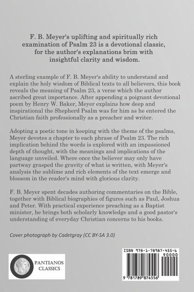 F. B. Meyer's uplifting and spiritually rich examination of Psalm 23 is a devotional classic, for the author's explanations brim with insightful clarity and wisdom. A sterling example of F. B. Meyer's ability to understand and explain the holy wisdom of Biblical texts to all believers, this book reveals the meaning of Psalm 23, a verse which the author ascribed great importance. After appending a poignant devotional poem by Henry W. Baker, Meyer explains how deep and inspirational the Shepherd Psalm was for him as he entered the Christian faith professionally as a preacher and writer. Adopting a poetic tone in keeping with the theme of the psalms, Meyer devotes a chapter to each phrase of Psalm 23. The rich implication behind the words is explored with an impassioned depth of thought, with the meanings and implications of the language unveiled. Where once the believer may only have partway grasped the gravity of what is written, with Meyer's analysis the sublime and rich elements of the text emerge and blossom in the reader's mind with glorious clarity. F. B. Meyer spent decades authoring commentaries on the Bible, together with Biblical biographies of figures such as Paul, Joshua and Peter. With practical experience preaching as a Baptist minister, he brings both scholarly knowledge and a good pastor's understanding of everyday Christian concerns to his books.