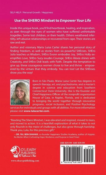 Use the SHEro Mindset to Empower Your Life Inside this unique book, you'll find heartbreak, healing, and inspiration, as seen through the eyes of women who have suffered unthinkable tragedies. Some lost children, or their health. Others weathered infertility, left abusive relationships, or recovered from rape. Their stories are raw and real. Author and visionary Maria Luisa Carter shares her personal story of finding freedom, as well as stories from six powerful SHEroes. SHEro Julie teaches us Wisdom, SHEro Evonn embodies Joy, SHEro Holly exemplifies Love, SHEro Suzy exudes Courage, SHEro Alexia shines with Creativity, and SHEro Didi leads with Faith. Despite the temptation to give up, these courageous women chose to live and thrive - empowered by the virtues that they embody. You can too! Let the SHEroes show you the way!
