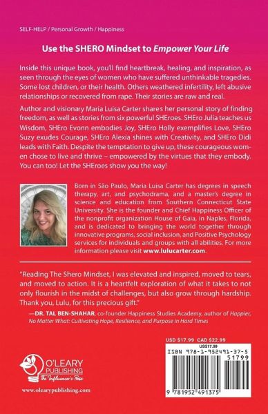 Use the SHEro Mindset to Empower Your Life Inside this unique book, you'll find heartbreak, healing, and inspiration, as seen through the eyes of women who have suffered unthinkable tragedies. Some lost children, or their health. Others weathered infertility, left abusive relationships, or recovered from rape. Their stories are raw and real. Author and visionary Maria Luisa Carter shares her personal story of finding freedom, as well as stories from six powerful SHEroes. SHEro Julie teaches us Wisdom, SHEro Evonn embodies Joy, SHEro Holly exemplifies Love, SHEro Suzy exudes Courage, SHEro Alexia shines with Creativity, and SHEro Didi leads with Faith. Despite the temptation to give up, these courageous women chose to live and thrive - empowered by the virtues that they embody. You can too! Let the SHEroes show you the way!