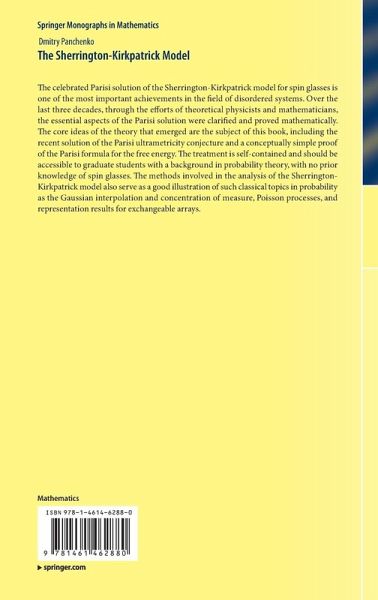 "The monograph under review is concerned with the Sherrington-Kirkpatrick (SK) model of spin glasses. ... The monograph deals with a notoriously difficult subject. Nevertheless, the author takes care to explain the ideas behind the proofs, which makes the text pleasant to read. It will most certainly remain a reference for years." (José Trashorras, Mathematical Reviews, April, 2014)
