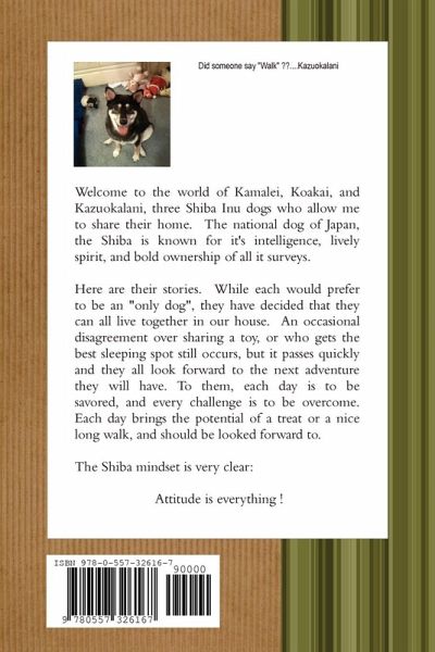 The stories of Shiba Inu dogs Kama, Koa and Kazu. Containing over 100 black and white photographs, it is a fun filled journey through their experiences in life.