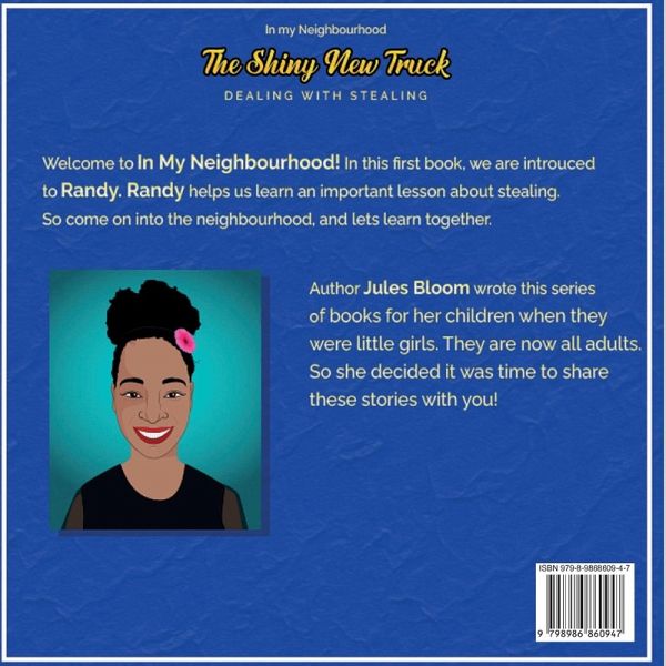 The Shiny New Truck: In My Neighborhood: Dealing with Stealing is the first book in the In My Neighborhood Series. This book introduces us to Randy and his desire for a toy he sees when shopping with his mother. The Shiny New Truck encourages readers to understand the importance of controlling our desires. Great book for a child to read or have read to them. At the end of the book are questions for the parent to help their child[ren] understand the story. The neighborhood books focus on children from five prominent families and how they handle different life situations. In this story, Randy helps the reader learn a valuable lesson about stealing. Randy shows the reader how to change even wrong decisions to make them turn out better. Randy, along with the help from his friends, learns valuable lessons from the word of God. The Shiny New Truck highlights the Christian values we want to see in our children when making difficult choices. Helping our children make moral choices encourages them to think about the outcomes of their actions. Randy had to make some choices, which helped him build his self-esteem as he learned how to do what was right.