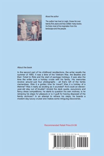 In the second part of his childhood recollections, the writer recalls the summer of 1965. It was a time of the Vietnam War, the Beatles and their Ticket to Ride and the start of package holidays. It was also the time the writer took a holiday cruise with his family. His memories revolve around just four photographs - all that's left of the family mementoes. Was it a golden time for travel? Was it a holiday of a lifetime? Was it really as exciting as it sounded? And could an eleven-year-old stay out of trouble? Amidst the deck quoits, excursions and fancy dress competitions, he starts to question his own motives; is he retracing his steps for pleasure or is it guilt for having disposed of the family archives? In an attempt to retrace his steps, he boards a modern-day luxury cruiser and makes some intriguing discoveries.