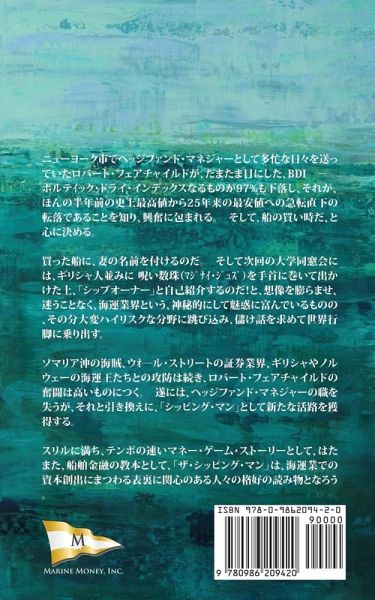 When restless New York City hedge fund manager Robert Fairchild watches the Baltic Dry Cargo Index plunge 97%, registering an all-time high and a 25-year low within the span of just six months, he decides to buy a ship. Immediately fantasizing about naming a vessel after his wife, carrying a string of worry beads and being able to introduce himself as a "shipowner" at his upcoming college reunion, Fairchild immediately embarks on an odyssey into the most exclusive, glamorous and high stakes business in the world. From pirates off the coast of Somalia and on Wall Street to Greek and Norwegian shipping magnates, the education of Robert Fairchild is an expensive one. In the end, he loses his hedge fund, but he gains a life - as a Shipping Man. Part fast-paced thriller, part ship finance text book, The Shipping Man is required reading for anyone with an interest in capital formation for shipping.