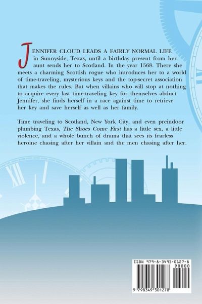 She wants a man. She needs a job. If she travels through time, she just might find both... Sunnyside, Texas, present day. Jennifer Cloud hates that she's unemployed and brokenhearted. Again. Still struggling to figure out how to adult, things get worse when an inherited amulet hurls her back to 1568 Scotland inside a smelly old outhouse. And though she's enchanted by kilted hunk Caiyan, she stumbles onto a plot to steal devices that can alter the past. Lost in a world that makes less sense than her modern one, Jennifer dutifully embraces her destiny to defend history. But when a Mexican revolutionary swipes her ticket home, her mission and future may have come to a dead end. Can Jennifer recover her strange necklace without rewriting prior events and maybe even hook up with the savory Scot? But the rakish Scot's not the only man looking to catch Jennifer's eye. Three men scheme for her affection: a devious Scot, a sexy racecar driver, and a friend from the past. Which man will be cunning enough to capture her heart? The Shoes Come First is the first book in the fun and frantic Jennifer Cloud time travel romance series. If you like magical portals, sassy heroines, and dashing defenders, you'll love Janet Leigh's lighthearted tale. Buy The Shoes Come First to turn back the clock today!