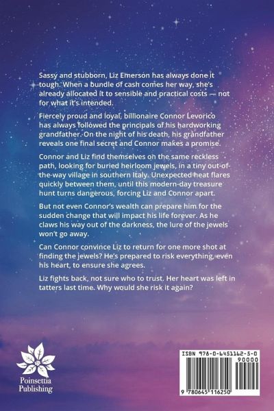 Hidden treasures ... broken spirits ... tangled love. Sassy and stubborn, Liz Emerson has always done it tough. When a bundle of cash comes her way, she's already allocated it to sensible and practical costs - not for what it's intended. Fiercely proud and loyal, billionaire Connor Levorico has always followed the principals of his hardworking grandfather. On the night of his death, his grandfather reveals one final secret and Connor makes a promise. Connor and Liz find themselves on the same reckless path, looking for buried heirloom jewels, in a tiny out-of-the-way village in southern Italy. Unexpected heat flares quickly between them, until this modern-day treasure hunt turns dangerous, forcing Liz and Connor apart. But not even Connor's wealth can prepare him for the sudden change that will impact his life forever. As he claws his way out of the darkness, the lure of the jewels won't go away. Can Connor convince Liz to return for one more shot at finding the jewels? He's prepared to risk everything, even his heart, to ensure she agrees. Liz fights back, not sure who to trust. Her heart was left in tatters last time. Why would she risk it again?