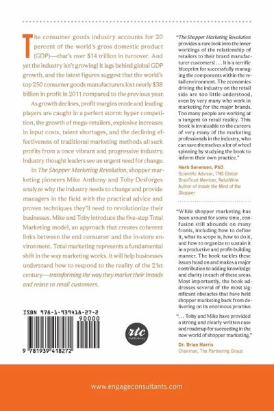 The consumer goods industry accounts for 20 percent of the world's gross domestic product (GDP)—that's over $14 trillion in turnover. And yet the industry isn't growing! It lags behind global GDP growth, and the latest figures suggest that the world's top 250 consumer goods manufacturers lost nearly $38 billion in profit in 2011 compared to the previous year. As growth declines, profit margins erode and leading players are caught in a perfect storm: hyper competition, the growth of mega-retailers, explosive increases in input costs, talent shortages, and the declining effectiveness of traditional marketing methods all suck profits from a once vibrant and progressive industry. Industry thought leaders see an urgent need for change. In The Shopper Marketing Revolution, shopper marketing pioneers Mike Anthony and Toby Desforges analyze why the industry needs to change and provide managers in the field with the practical advice and proven techniques they'll need to revolutionize their businesses. Mike and Toby introduce the five-step Total Marketing model, an approach that creates coherent links between the end consumer and the in-store environment. Total marketing represents a fundamental shift in the way marketing works. It will help businesses understand how to respond to the reality of the 21st century-transforming the way they market their brands and relate to retail customers.