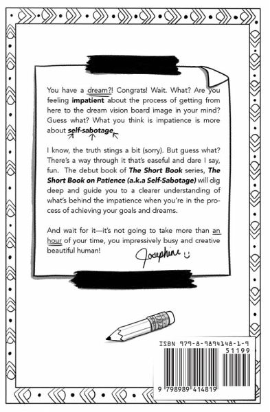 You have a dream?! Congrats! Wait. What? Are you feeling impatient about the process of getting from here to the dream vision board image in your mind? Guess what? What you think is impatience is more about self-sabotage. I know, the truth stings a bit (sorry). But guess what? There's a way through it that's easeful and dare I say, fun. The debut book of The Short Book series, The Short Book on Patience (a.k.a Self-Sabotage) will dig deep and guide you to a clearer understanding of what's behind the impatience when you're in the process of achieving your goals and dreams. And wait for it-it's not going to take more than an hour of your time, you impressively busy and creative beautiful human!