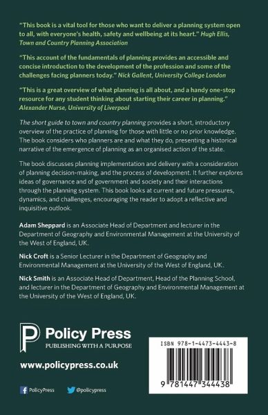 This fully updated short guide discusses the planning system, processes, legal constructs and approaches, taking into account the recent regulatory changes within the UK nations. It explores the interactions of government and society with the planning system, encouraging the reader to adopt a reflective and inquisitive outlook.