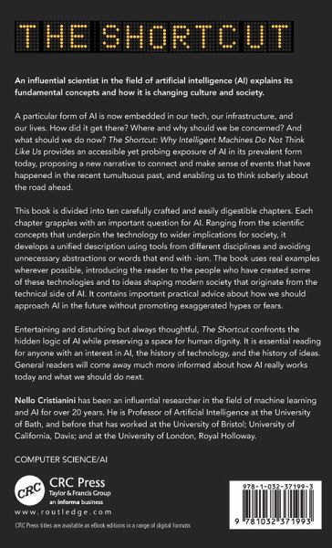 A particular form of AI is now embedded in our tech, our infrastructure, and our lives. How did it get there? Where and why should we be concerned? And what should we do now? The Shortcut: Why Intelligent Machines Do Not Think Like Us provides an accessible yet probing exposure of AI in its prevalent form today, proposing a new narrative to connect and make sense of events that have happened in the recent tumultuous past, and enabling us to think soberly about the road ahead.