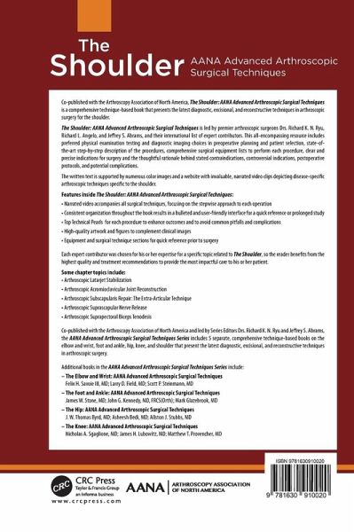 Presents the latest diagnostic, excisional, and reconstructive techniques in arthroscopic surgery for the shoulder. This all-encompassing resource includes preferred physical examination testing and diagnostic imaging choices in pre-operative planning and patient selection, state of the art step-by-step description of the procedures, comprehensive surgical equipment lists, clear and precise indications for surgery, controversial indications, post-op protocols, and potential complications.