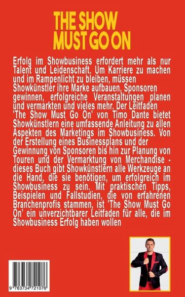 The Show Must Go On: Ein Leitfaden für erfolgreiches Marketing im Showbusiness" von Timo Dante ist das ultimative Handbuch für alle Showkünstler, die ihre Karriere auf die nächste Stufe bringen möchten. Das Buch bietet umfassende Informationen und praktische Tipps für alles, von der Planung einer Tour bis hin zur Gewinnung von Sponsoren und der Erstellung von Merchandise.Der Autor Timo Dante ist selbst erfolgreicher Showkünstler und bringt seine jahrelange Erfahrung in die Themen ein, die er in diesem Buch behandelt. Er deckt alle Aspekte des Marketings für Showkünstler ab, von der Vermarktung einer Show bis hin zur Finanzierung von Projekten.Das Buch beginnt mit der Erklärung der Grundlagen des Marketings für Showkünstler und geht dann auf spezielle Themen wie die Gewinnung von Sponsoren, die Erstellung von Merchandise und die Planung von Events ein. Es enthält auch Tipps für erfolgreiches Finanzmanagement und Informationen darüber, wie man erfolgreiche Pressemitteilungen schreibt und Medienkontakte knüpft.Ein besonderer Schwerpunkt des Buches ist die Tourplanung. Der Autor bietet detaillierte Anleitungen darüber, wie man eine Tour plant, vermarktet und organisiert, um sicherzustellen, dass sowohl Showkünstler als auch das Publikum eine unvergessliche Erfahrung haben.Das Buch enthält auch ein Kapitel über Public Relations und warum es für Showkünstler wichtig ist. Der Autor erklärt, wie PR dazu beitragen kann, die Bekanntheit eines Showkünstlers zu erhöhen und Beziehungen zu Medienvertretern aufzubauen.Insgesamt ist "The Show Must Go On: Ein Leitfaden für erfolgreiches Marketing im Showbusiness" von Timo Dante ein unverzichtbares Handbuch für alle Showkünstler, die ihre Karriere auf die nächste Stufe bringen möchten.