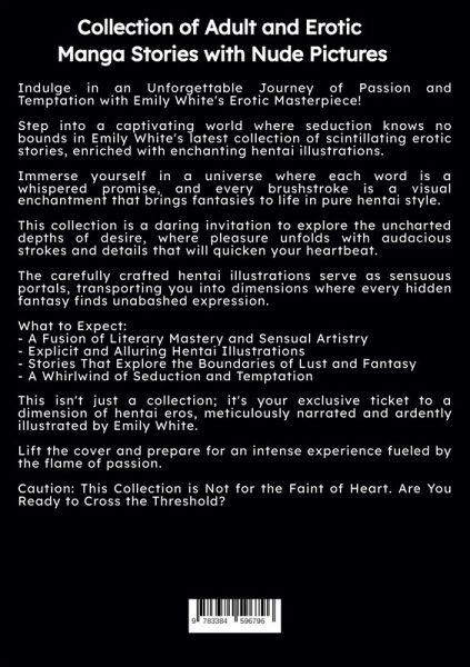 Indulge in an Unforgettable Journey of Passion and Temptation with Emily White's Erotic Masterpiece!Step into a captivating world where seduction knows no bounds in Emily White's latest collection of scintillating erotic stories, enriched with enchanting hentai illustrations. Immerse yourself in a universe where each word is a whispered promise, and every brushstroke is a visual enchantment that brings fantasies to life in pure hentai style.This collection is a daring invitation to explore the uncharted depths of desire, where pleasure unfolds with audacious strokes and details that will quicken your heartbeat. The carefully crafted hentai illustrations serve as sensuous portals, transporting you into dimensions where every hidden fantasy finds unabashed expression.What to Expect:- A Fusion of Literary Mastery and Sensual Artistry- Explicit and Alluring Hentai Illustrations- Stories That Explore the Boundaries of Lust and Fantasy- A Whirlwind of Seduction and TemptationThis isn'tjust a collection; it's your exclusive ticket to a dimension of hentai eros, meticulously narrated and ardently illustrated by Emily White. Lift the cover and prepare for an intense experience fueled by the flame of passion.Caution: This Collection is Not for the Faint of Heart. Are You Ready to Cross the Threshold?