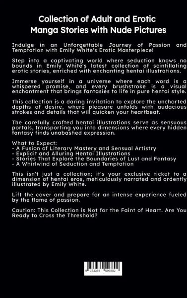 Indulge in an Unforgettable Journey of Passion and Temptation with Emily White's Erotic Masterpiece!Step into a captivating world where seduction knows no bounds in Emily White's latest collection of scintillating erotic stories, enriched with enchanting hentai illustrations. Immerse yourself in a universe where each word is a whispered promise, and every brushstroke is a visual enchantment that brings fantasies to life in pure hentai style.This collection is a daring invitation to explore the uncharted depths of desire, where pleasure unfolds with audacious strokes and details that will quicken your heartbeat. The carefully crafted hentai illustrations serve as sensuous portals, transporting you into dimensions where every hidden fantasy finds unabashed expression.What to Expect:- A Fusion of Literary Mastery and Sensual Artistry- Explicit and Alluring Hentai Illustrations- Stories That Explore the Boundaries of Lust and Fantasy- A Whirlwind of Seduction and TemptationThis isn'tjust a collection; it's your exclusive ticket to a dimension of hentai eros, meticulously narrated and ardently illustrated by Emily White. Lift the cover and prepare for an intense experience fueled by the flame of passion.Caution: This Collection is Not for the Faint of Heart. Are You Ready to Cross the Threshold?
